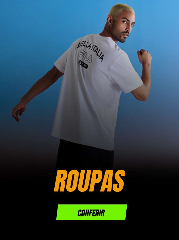 Banner promocional com foco em looks esportivos a partir de R$ 99,90, com chamada visual impactante em tons de azul e roxo neon. A imagem mostra três modelos em uma quadra de tênis usando roupas esportivas das marcas Fila, New Balance e outras, representando diversidade, estilo e conforto. O visual comunica moda casual esportiva, ideal para atividades físicas e uso urbano.  Palavras-chave: looks esportivos, moda fitness, roupas esportivas, promoção, conforto e estilo, estilo urbano, a partir de R$ 99,90, Fila, New Balance, confere agora, quadra de tênis, moda ativa, outfit esportivo.